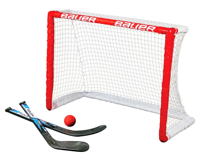 L’Set de buts de hockey pour genoux Bauer en plastique avec filet est une aide à l’entraînement adaptée aux joueurs de tous niveaux. Il est conseillé de tirer une rondelle ou une balle en plastique sur le but.